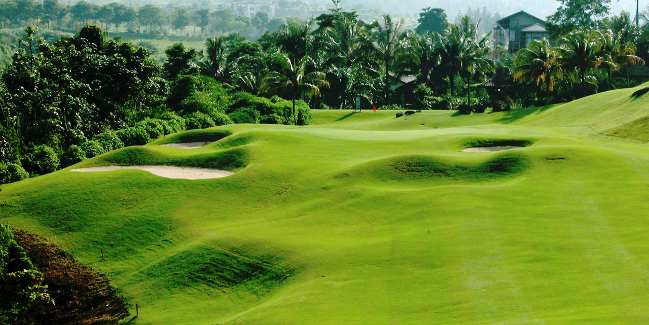 Gunung Geulis, which means beautiful mountain in the Indonesian, is bounded rivers and mountains. There are 36 holes on offer, with the original West Course opened in 1992, and the newer East Course which opened in 1994. Thomson, Wolveridge, and Perret, world famous Australian golf course architects, designed both courses.