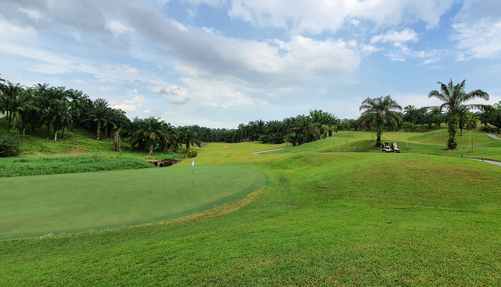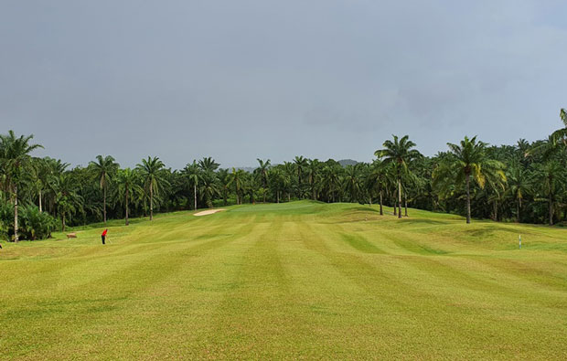 The back nine sets its style with undulating terrain lined with palm-oil trees. Large sand bunkers flank most fairways, and deep rough lies beyond the first cut. Its terrain surprises with more water hazards that test the golfer's judgment. A few holes have creeks crossing the fairways twice, setting up some excellent risk-reward opportunities for long hitters.