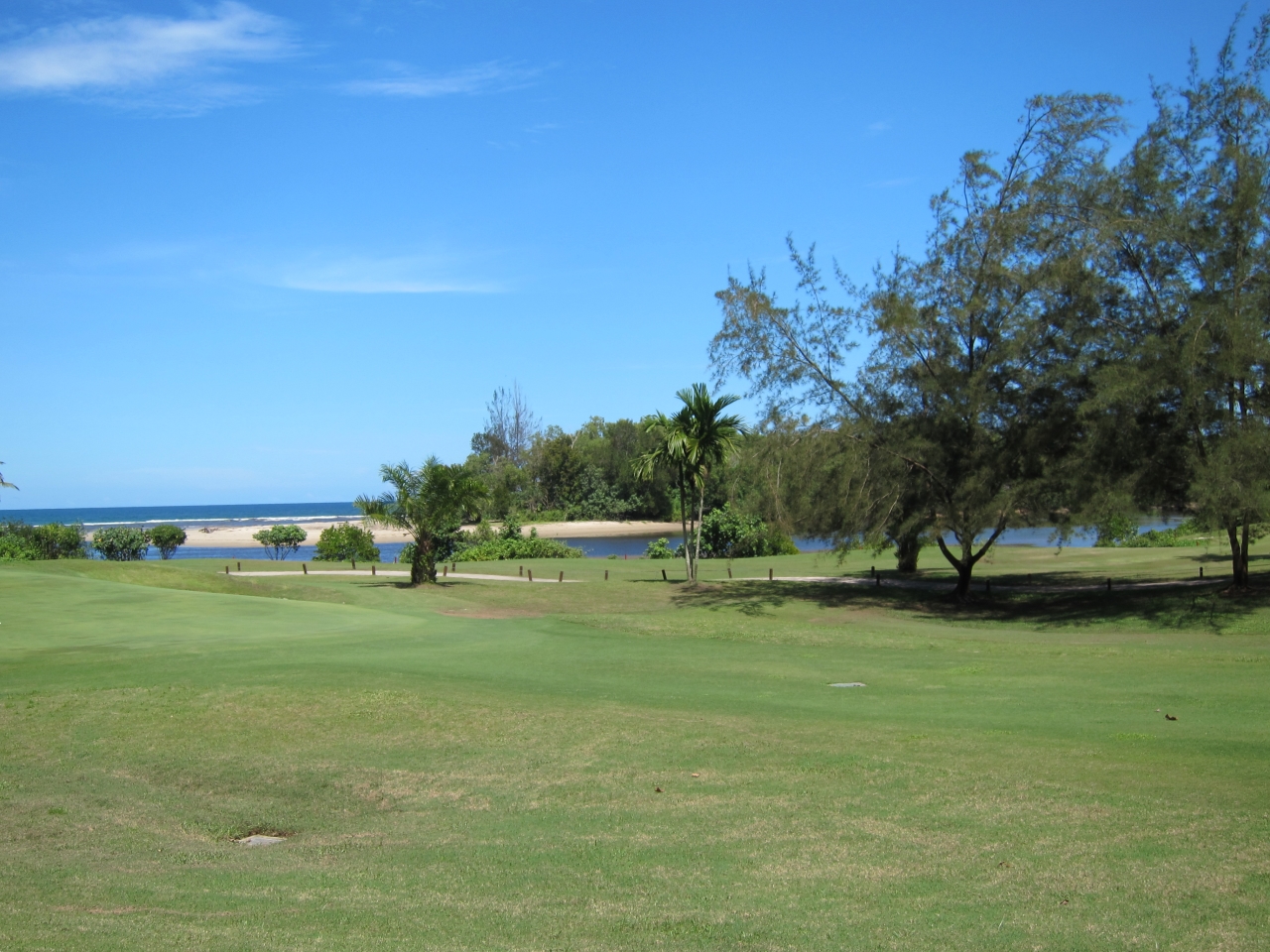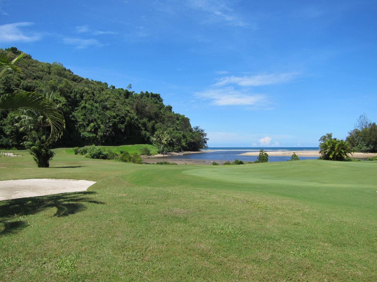 The Sabah golf course is bordered by the Tambalang and Menagkabong Rivers and the surrounding area is mainly forested jungle and mangrove swamps. The sea breeze carries the cries of wild birds and dense jungle fringes the immaculately manicured greens. The course curves through rivers, wild rainforest and wetlands. Much of it was painstakingly developed from mangrove swamps. As you play the challenging course, you’ll catch glimpses of the pristine Pantai Dalit Beach. Monkeys and monitor lizards are an occasional course hazard!