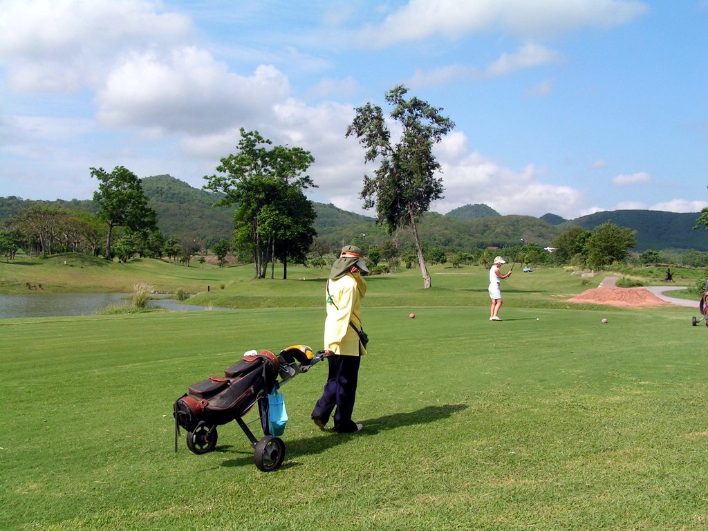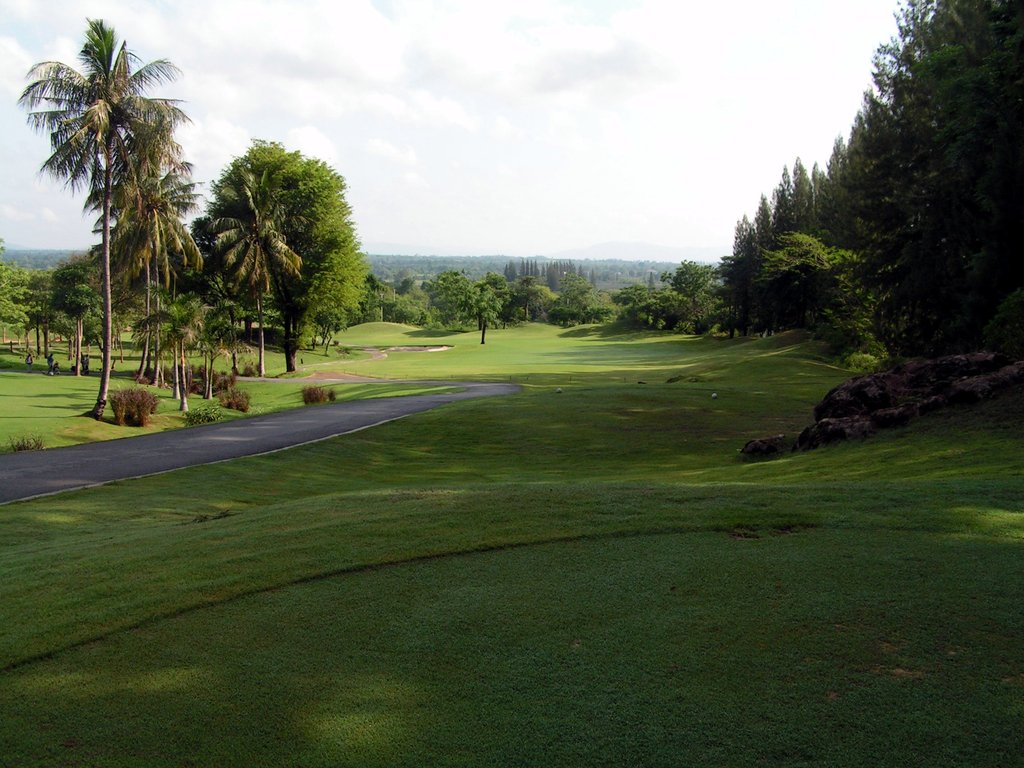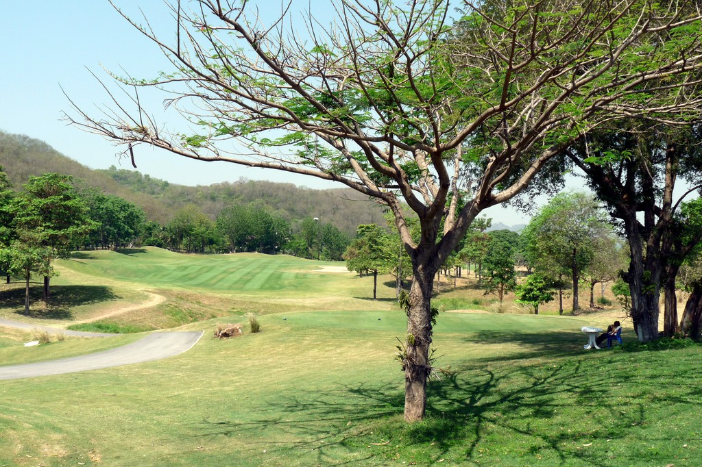 The course has large trees lining most fairways, and bunkers are located in strategic landing areas and around the greens. Adjoining the property is the Bonanza Khao Yai Golf Resort for stay and play golf guests. As a departure from typical concrete dominated resorts, 80% of the Bonanza resort materials are wood, and the whole place has a Western feel to it.